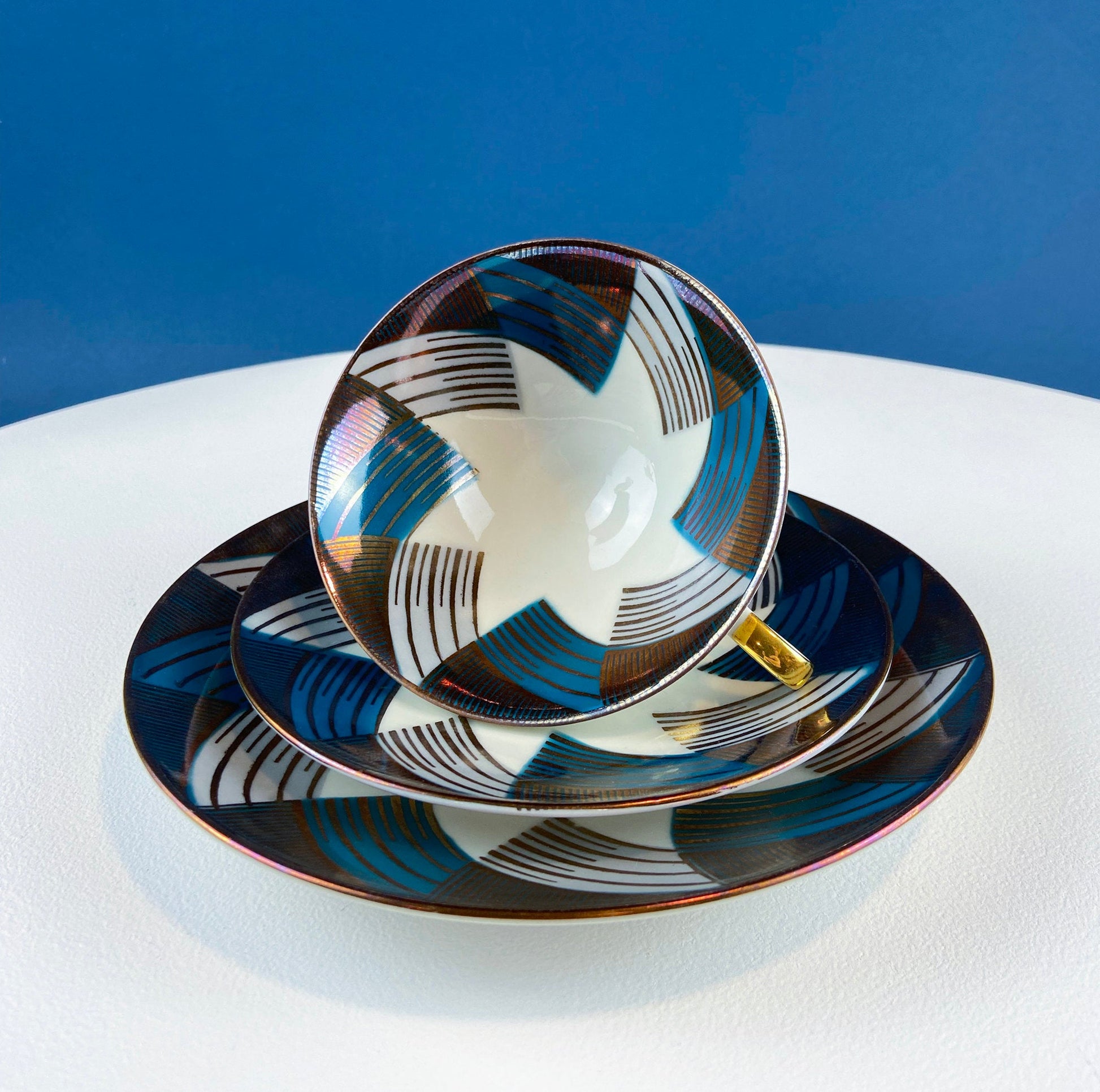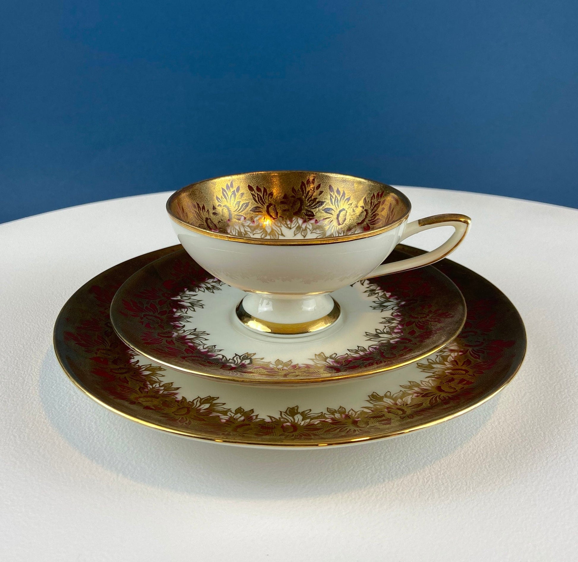 Elgenbein Bavarian Tea Trio — Crimson and Gold