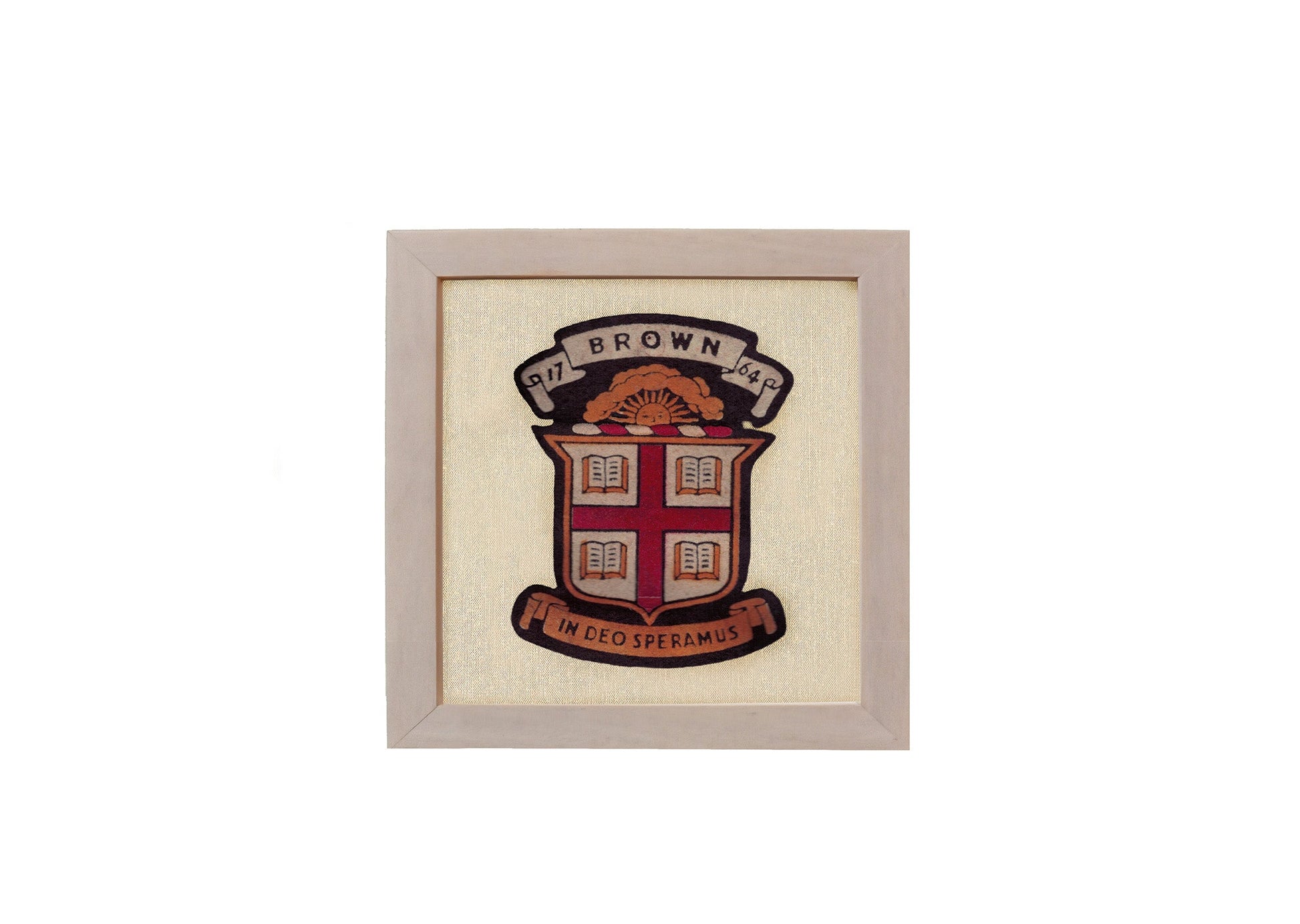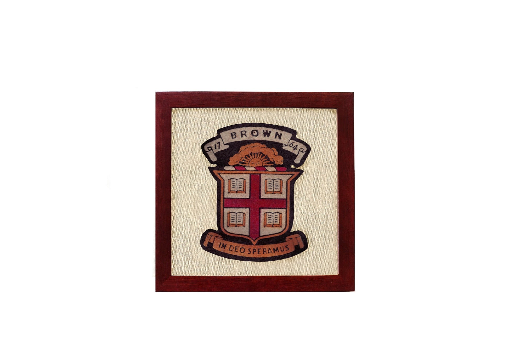 A rare piece of vintage history from Brown University, this seal from the 1950s is available in your choice of Black, Mahogany, or Light Wood frame. Framed in U/V glass and cut mat.