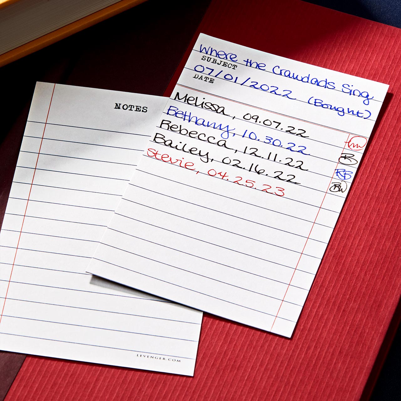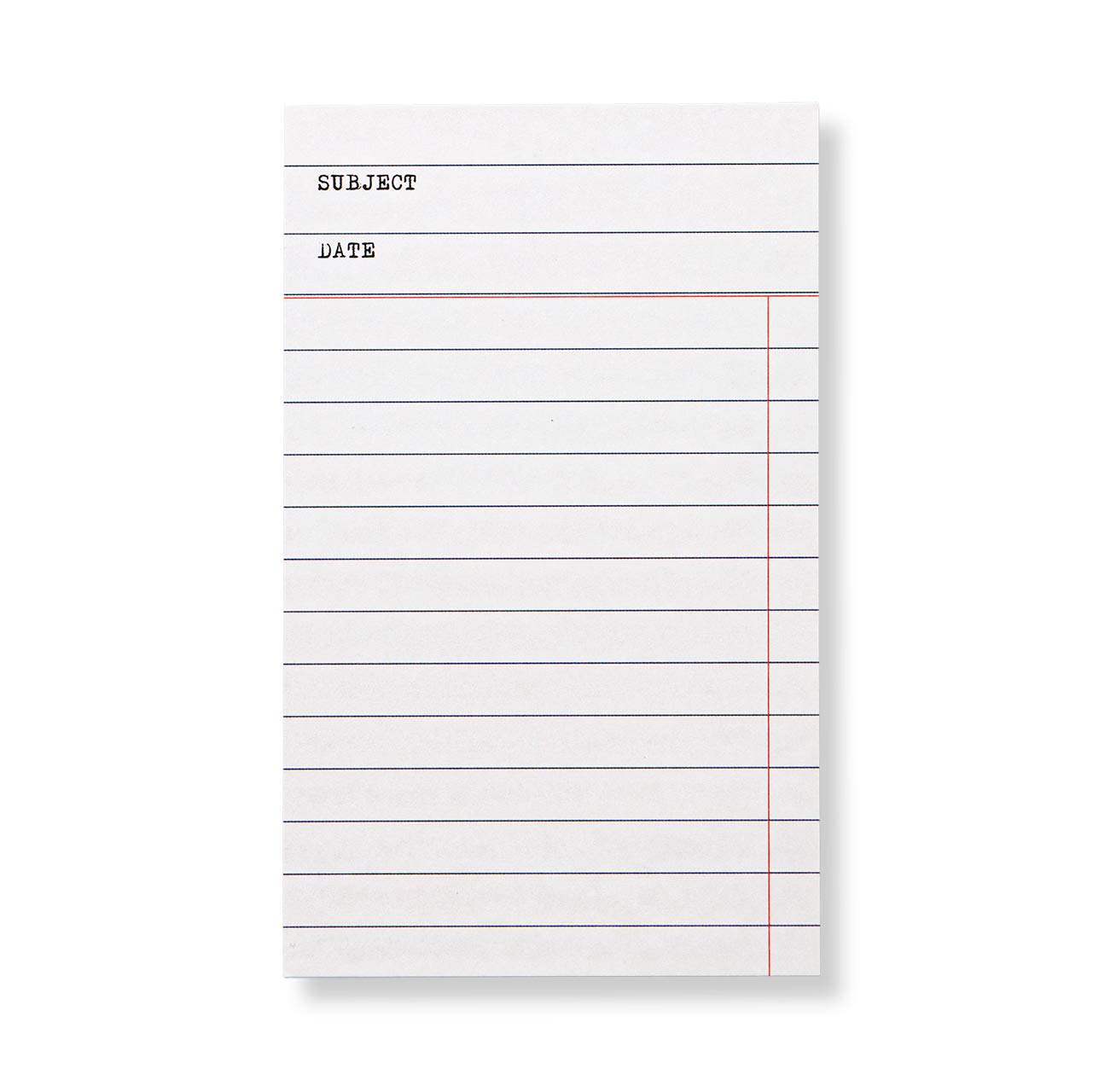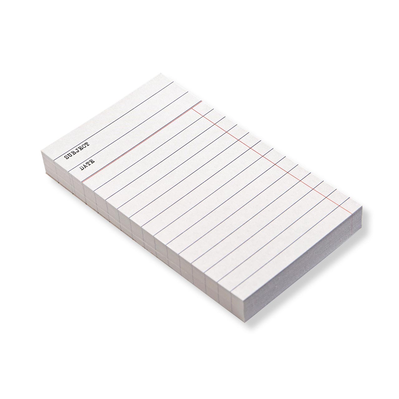 Modeled after the old lending cards that lived in the backs of library books. Vertical ruled, cream stock, 3 × 5 inches. Useful for lists, reminders, margin notes, and the kind of thinking that benefits from a small surface. Set of 50.